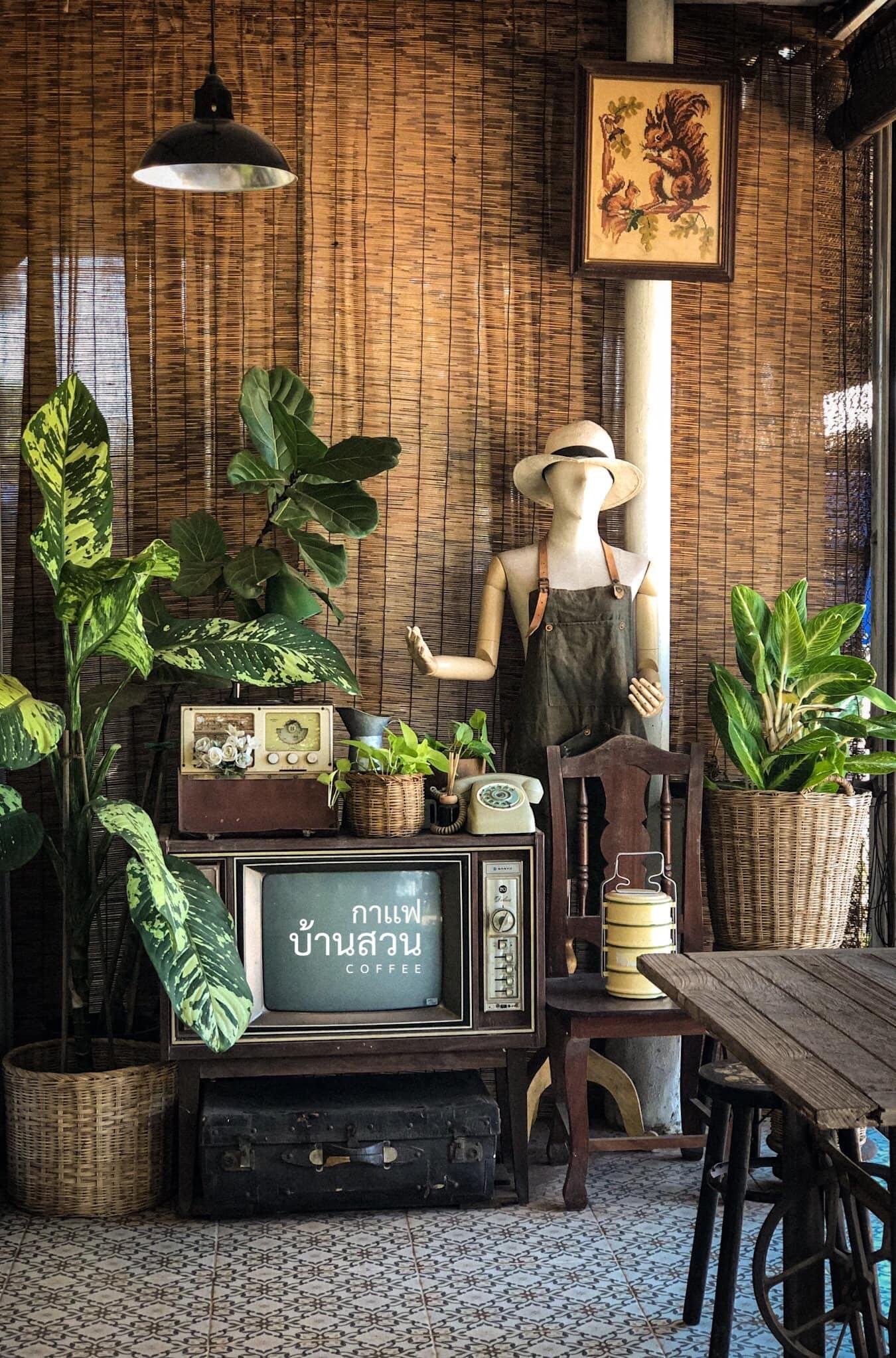 ซึ่งเป็นการใช้ของที่มีคุณค่า มาจัดวางให้เป็นจุดสนใจมากขึ้น ไม่ว่าจะเป็นโทรศัพท์หมุนโบราณ วิทยุโบราณ จัดสลับตกแต่งร่วมกับต้นไม่นานาชนิดทำให้เป็นการเชื่อมความคลาสสิคร่วมกับธรรมชาติได้อย่างลงตัว