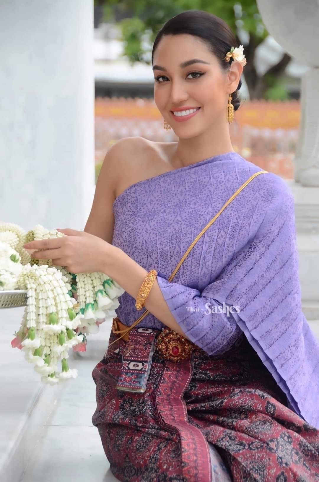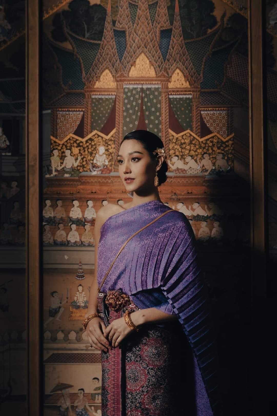 ให้ MUT 16 นิโคลีน พิชาภา ลิมศนุกาญจน์ ชุดไทยประจำชาติเข้าร่วมกิจกรรม “ผ้าไทยทันสมัยใส่ไปทำบุญ”